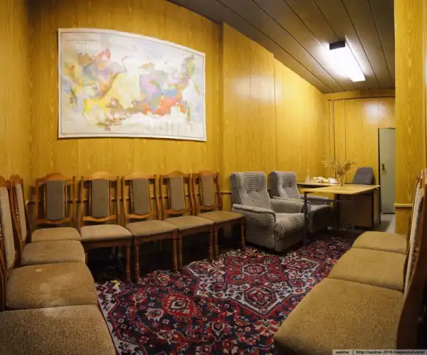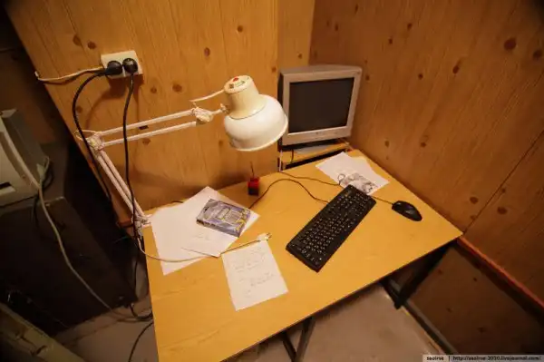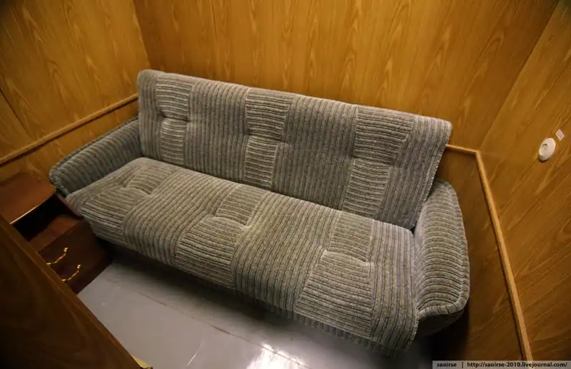Cамое большое отличие кабинета министра - это вот этот диванчик. Остальные обитатели кто - на раскладушке, кто - на нарах, а вот министр, хоть и в тесном помещении, но на мягком.