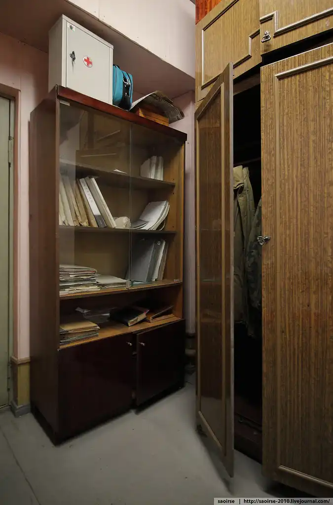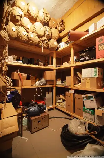 В убежище есть и второй уровень, но он чисто технический, и с учетом ограниченности во времени (вдруг караульный вернется) фотографировать его не стал.