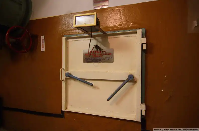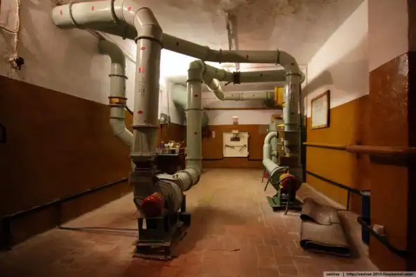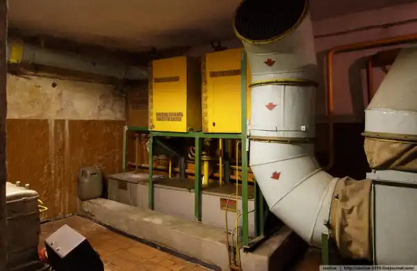 Начинаем тихо осматривать ближайшие помещения у нашего входа. Первые комнаты - технические. Это комната с ФВУ. Видно, что в убежище предусмотрено два режима работы установок в зависимости от того, что происходит сверху.