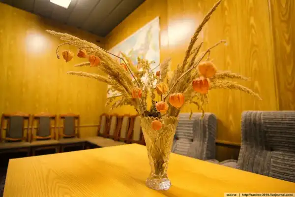 Графин и три рюмки... Что-то мне подсказывает: не воду сюда наливают! Оно в принципе и логично: ведь если здесь кто-то окажется, значит наверху явно не все спокойно.