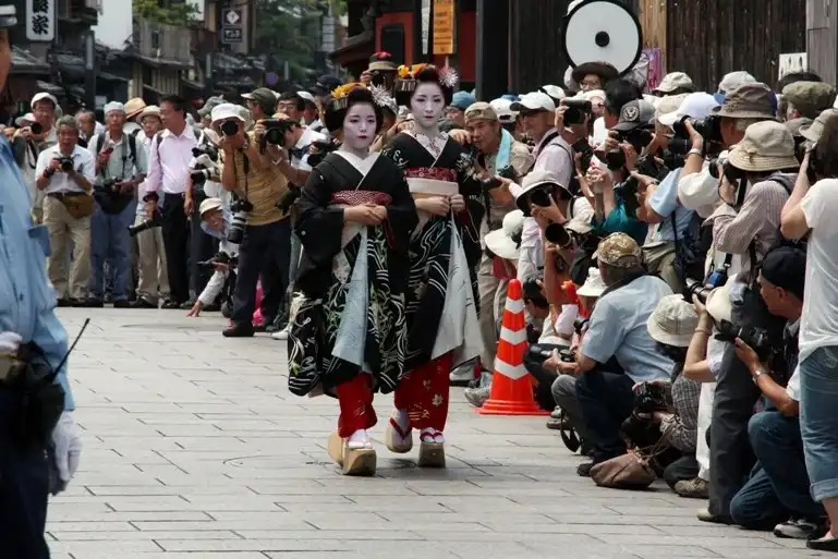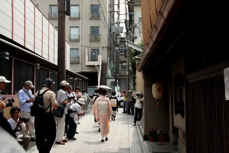 Для жителей Киото и гостей города 1 августа — одна из немногих возможностей в году увидеть сразу практически всех действующих гейш, да еще и при полном параде. Потому событие всегда собирает толпы зрителей с фото- и кинокамерами.