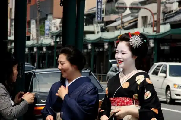 Одна из гейко попросила фотографа сделать снимок и на ее камеру.