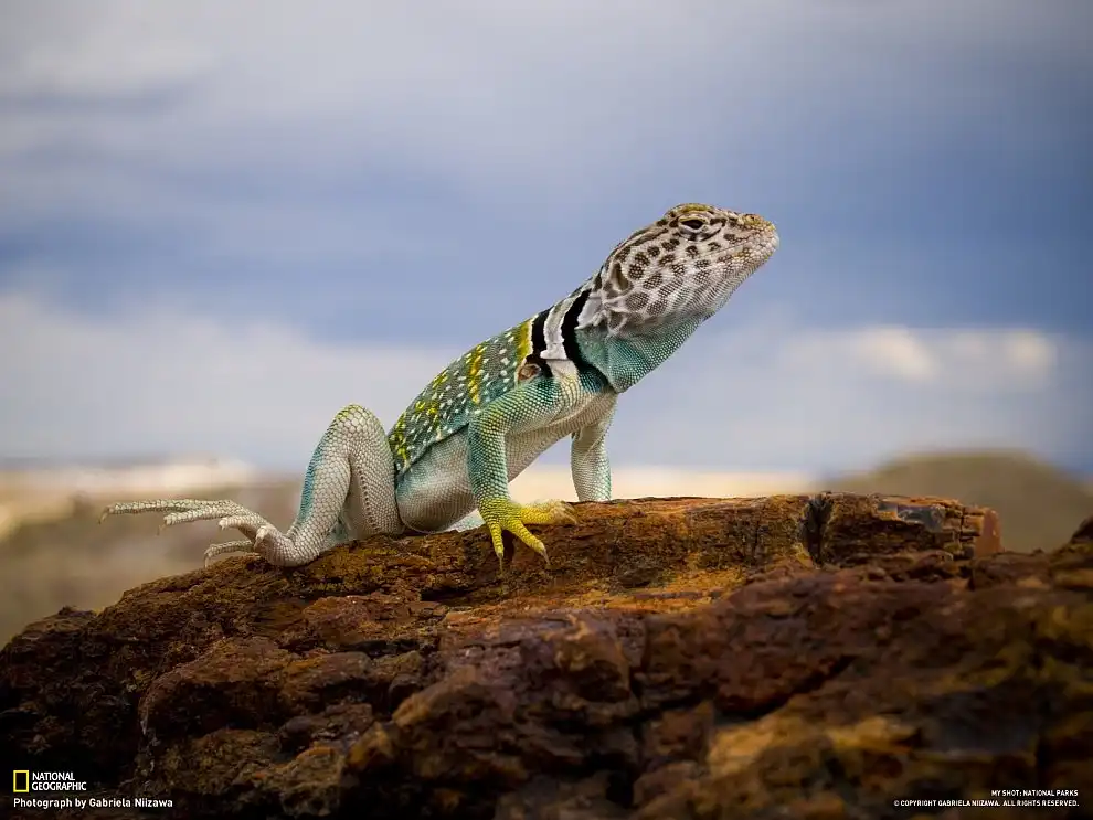 Национальный парк Петрифайд-Форест ("Окаменевший лес") расположен на востоке штата Аризона и занимает около 380 км2. На его территории можно увидеть множество окаменелостей, в основном деревьев, возраст которых превышает двести миллионов лет. Вот ящерица сидит на окаменелом стволе дерева, которому 225 миллионов лет: