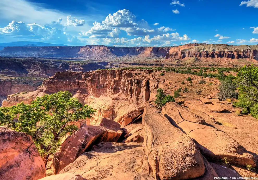Национальный парк Капитол Риф (Capitol Reef ), штат Юта, который еще в 20-е годы прошлого века получил от местных энтузиастов прозвище "Страна чудес Уэйна", выступавших за развитие парковой зоны. Красочные каньоны, хребты, скальные арки и монолиты - все это действительно производит потрясающее впечатление: