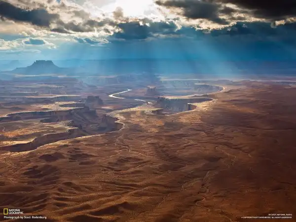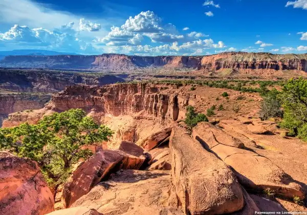 Национальный парк Каньонлендс, штат Юта. Здесь множество ущелий, гор и речных долин, которые являются частью пустынного ландшафта: