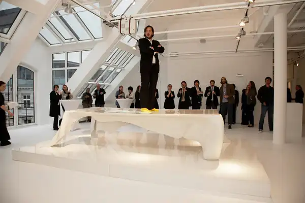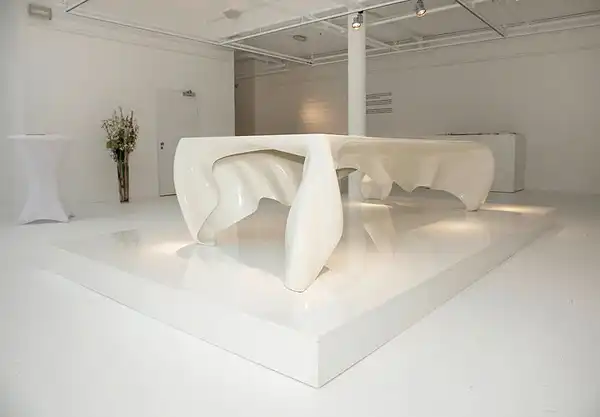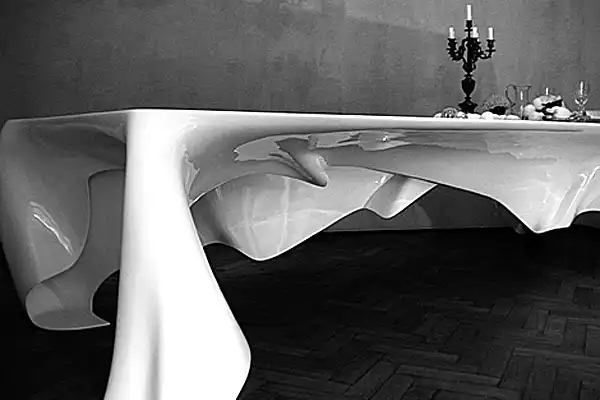 Немецкая архитектурная студия Graft Architects выпустила новый, визуально поразительный стол Phantom Table. У "Призрачного Стола," сделанного из углеродистого волокна и пластмассы - плавный дизайн, который создает иллюзию таяния. Он как будто накрыт скатертью, которой на самом деле нет.