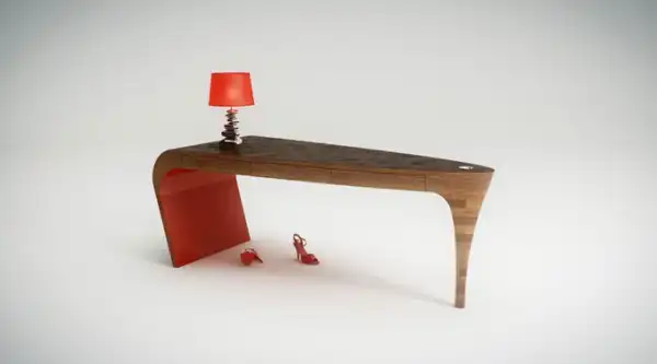 Дизайнеры из Splinter Works создали стол в форме каблука. Такой стол, пожалуй, очень уместно смотрелся бы в кабинете редактора журнала мод.