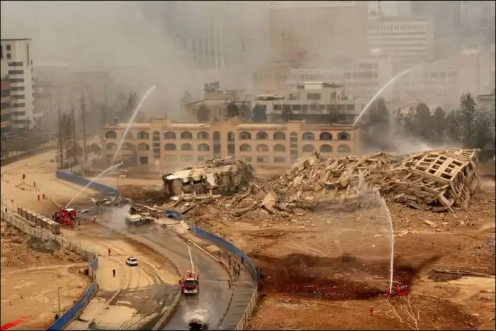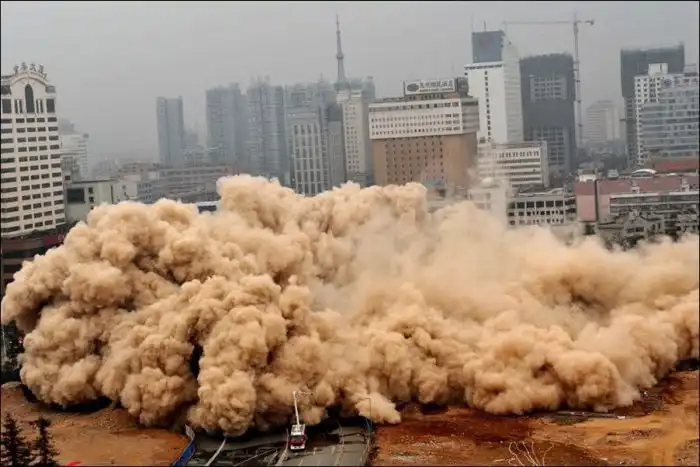 В китайском городе Куньмин снесли 80-метровое здание с помощью запланированного взрыва.