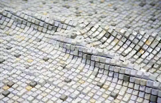 В продолжении вы увидите также инсталляцию TEXTile (ТЕКСТиль) двухгодичной давности, в которой компьютерная клавиатура выложена в форме ткани, появляющейся из ткацкого станка. В эпоху становления блоггерства как социального феномена - весьма актуальный художественный жест.