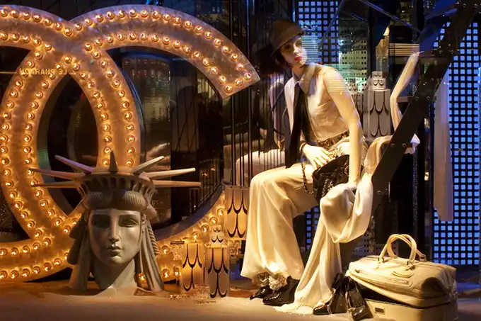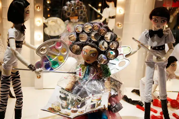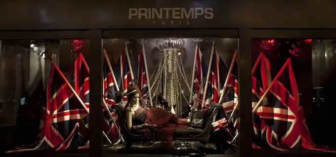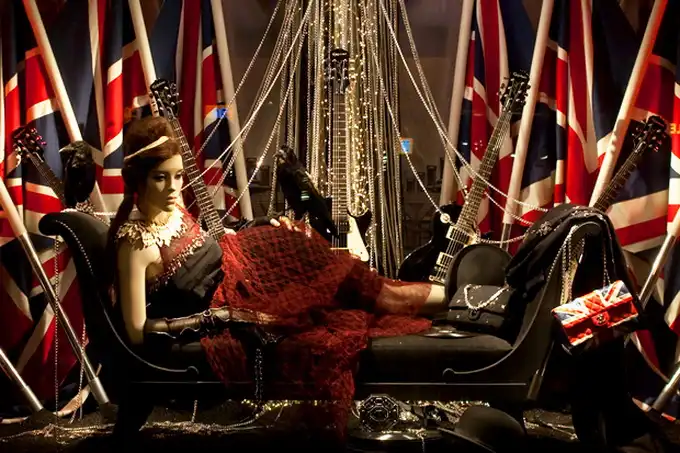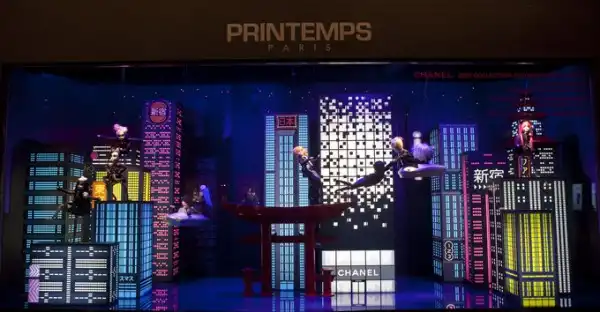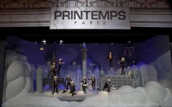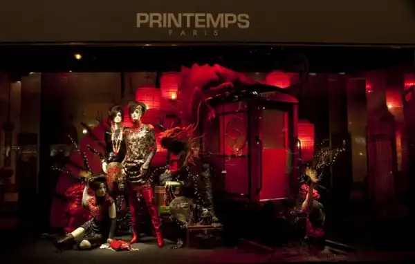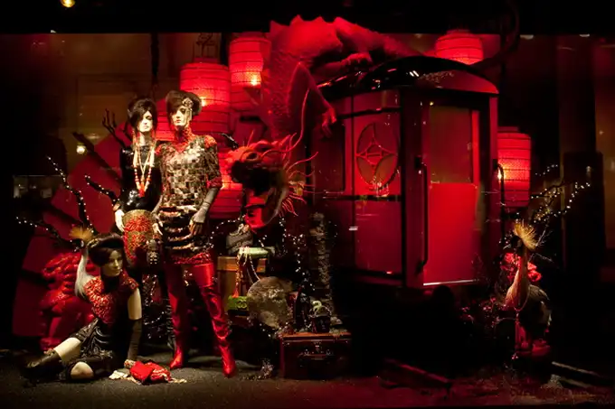 Витрины украшены в стиле крупнейших столиц мира- Токио,Лондон, Москва и т.д.