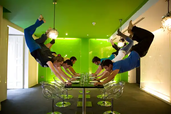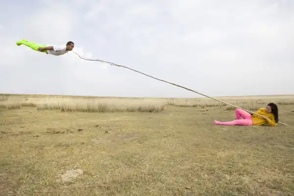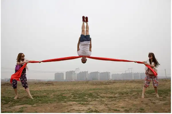 Предлагаем оценить новые работы китайского фотографа Ли Вей (Li Wei). Его фото это смесь перформанса и фотографии, создающие иллюзию полета и нарушение законов физики. Автор утверждает, что все фото сделаны без монтажа. Только при помощи скромного реквизита: зеркало, металлических тросов, строительных лесов и акробатики.