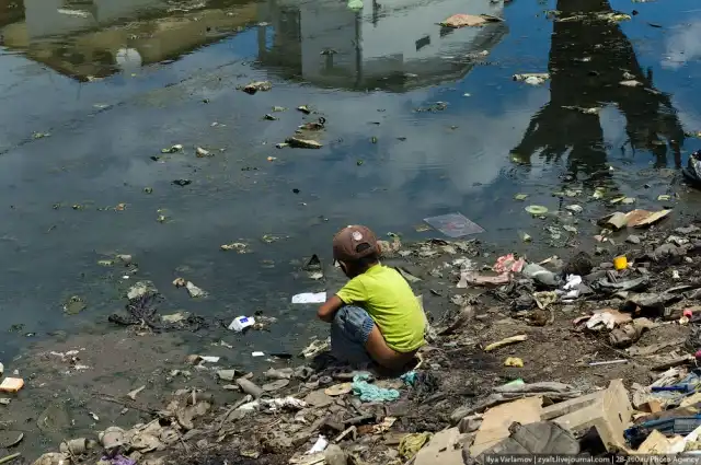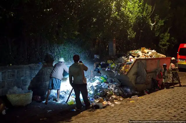 Очень много людей живет на улицах. Дети построили себе дом около припаркованной машины. Весь город чем-то торгует, а те, кто не торгует - попрошайничают.