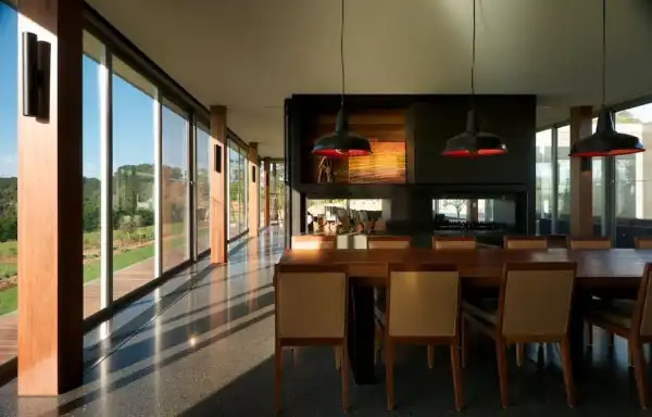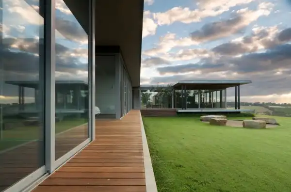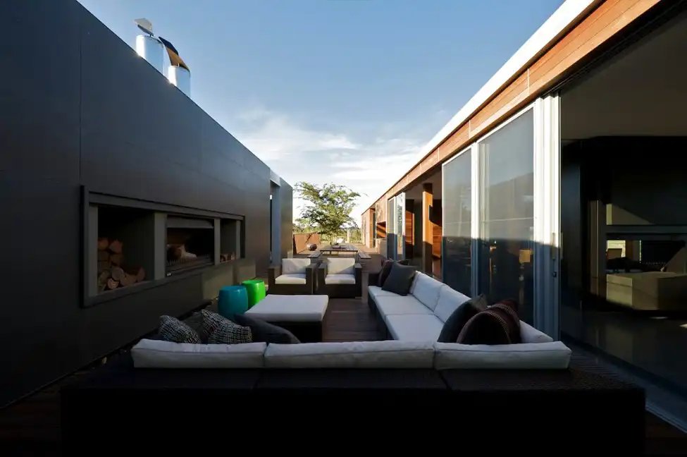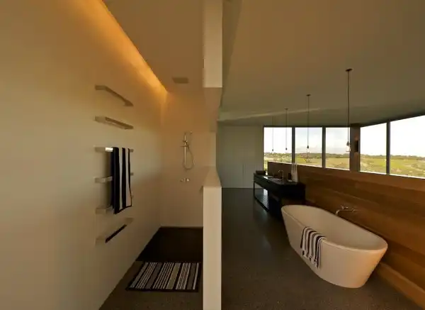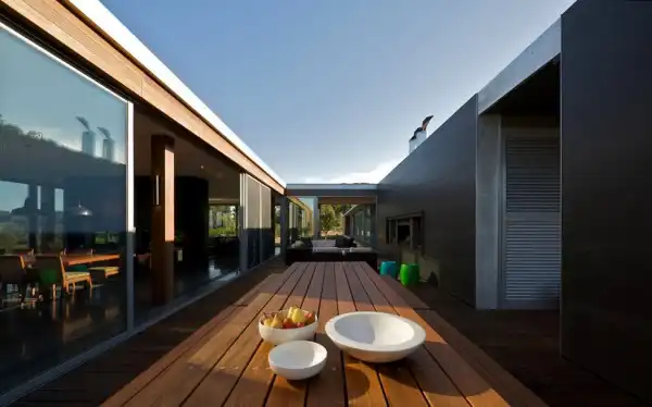 Главными достопримечательностями проекта являются огромный бассейн, а также открытые террасы, предусмотренные в качестве зон отдыха. Спрятанные за стенами конструкции, они дарят полную приватность и уединение, в то время как панорамные окна делают дом открытым, сближают с окружающей красотой.
