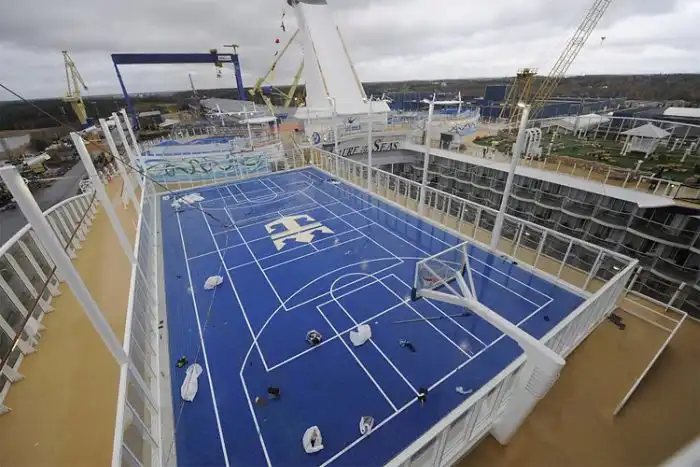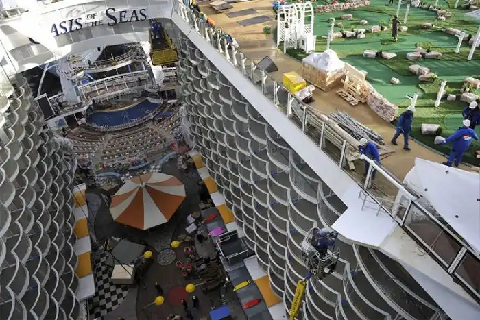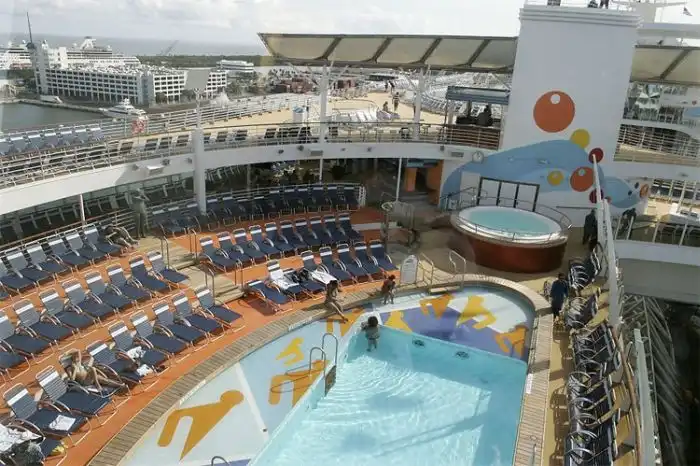 На палубе растут настоящие деревья и кустарники, бассейн с джакузи,