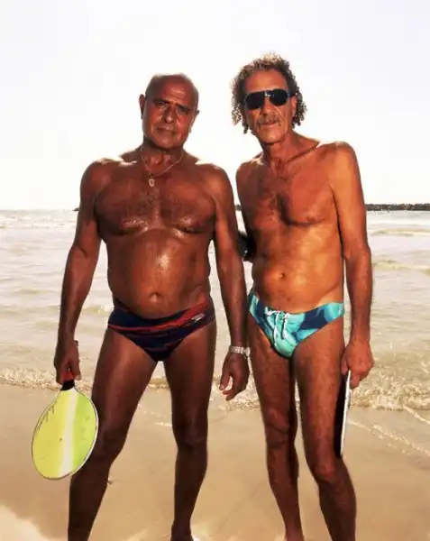 которые пришли отдохнуть на берегу и посидеть на песке под палящим солнцем.