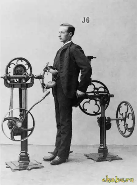 Удивительно, но эти конструкции, больше похожие на старые швейные машины, были призваны повысить мышечный тонус и увеличит у достойных джентльменов.
