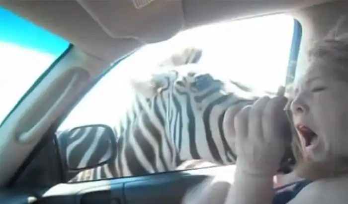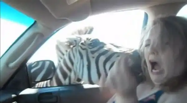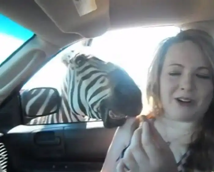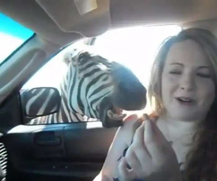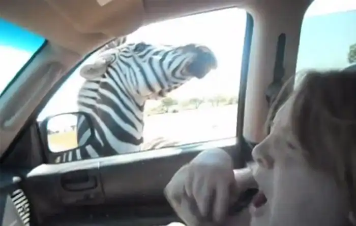 Но зебре пришелся не по вкусу гостинец, и она решила попробовать на вкус плечо доброй девушки.