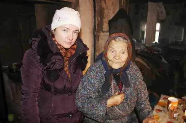 - Я сегодня ночью молилась, что бы кто - нибудь ко мне пришел и помог с дровами и Бог мне послал Вас, замерзла я совсем. Лягу под одеяло и стучу остатками зубов. Вода в кране замерзла, продуктов почти нет. В старой кружке бабушкин обед: баланда из воды, муки и хлеба. В глазах у бабушки Вари слезы, значит помощь пришла во время. Приносим топливные брикеты, много 40 упаковок по 10 кг в каждой. Лицо светлеет, сразу начинаем топить,а то на улице же мороз.