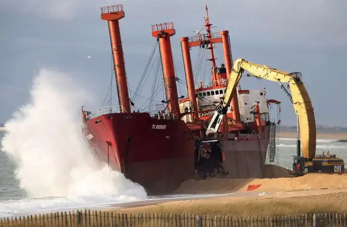 Помните, я вам показывал, как на французское побережье выбросило сухогруз TK Bremen?
