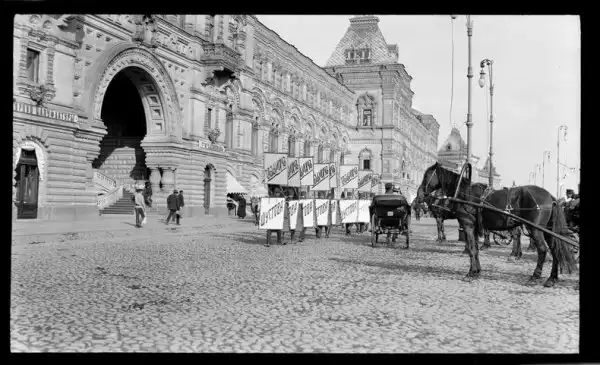 Человек, который сделал эти снимки в 1909 году сопровождал группу американских лошадей на выставочный тур в Москве. В ходе поездки он снял 400 фотографий с камеры Graflex. Его несколько раз арестовывали за несанкционированные попытки съемки.