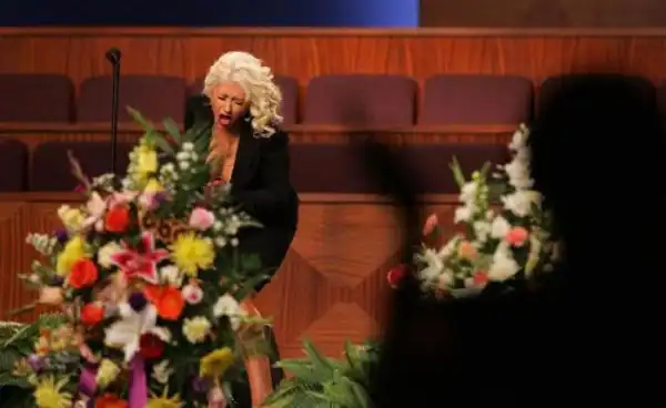 Кристина Агилера выступила на похоронах известной блюзовой исполнительницы Этты Джеймс. Во время того, когда она пела, случился конфуз, который было сложно не заметить...