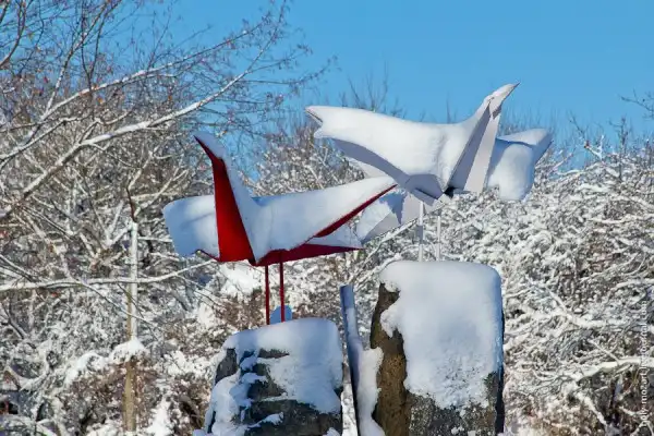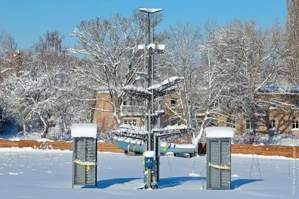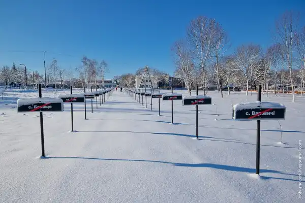 Почтовая площадь на аллее памяти. Стилизированное дерево с брошенными скворечниками и почтовые ящики. Говорят, в эти почтовые ящики люди бросают письма своим умершим родственникам.