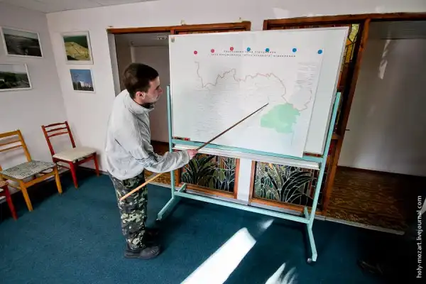 Здесь нам показали на карте саму зону отчуждения. На территории Зоны было определено три контролируемых территории: