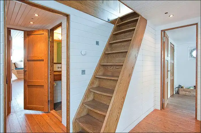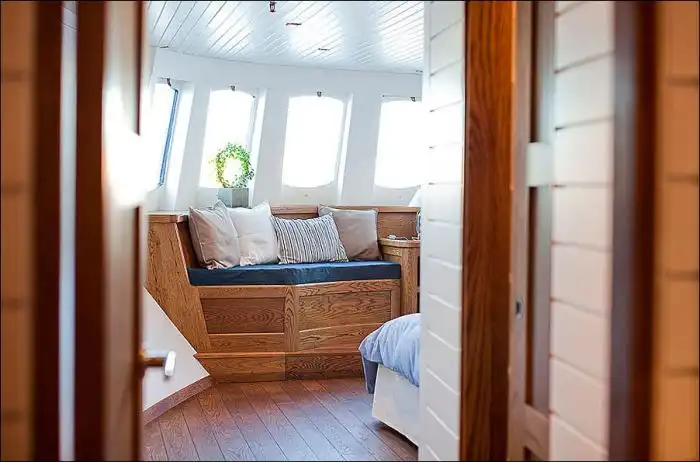 Судно было выкуплено и переделано в современный жилой дом с площадью в 150 квадратных метров.