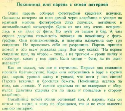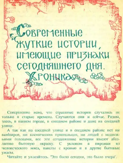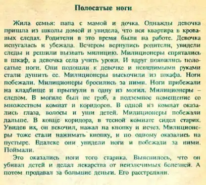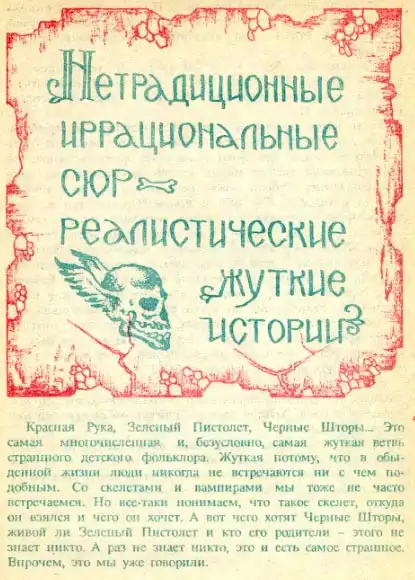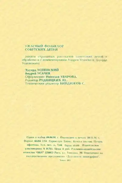 Каково же было мое удивление, когда я совершенно случайно узнал, что оказывается был сборник этих детских страшилок, изданный почти сразу после развала СССР в 1991 году под редакцией детских писателей Эдуарда Успенского и Андрея Усачева.