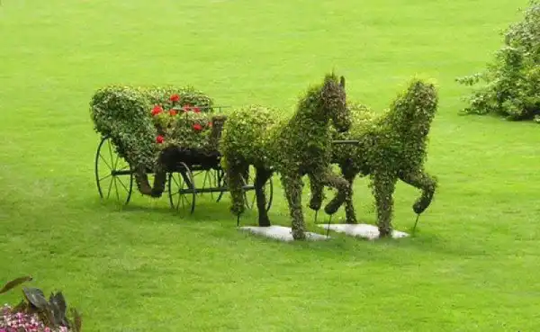 Топиари — искусство фигурной стрижки деревьев и кустарников, для придания им определенной формы. Есть мнение, что родоначальником этого удивительного приема был присматривающий за угодьями Цезаря садовник по имени Калвена. Правителю так понравилось, как последний фигурно подрезал дерево, что он потребовал, чтобы его владения украшали только такие красивые скульптуры. В римской империи мастер, знающий искусство топиари, оценивался в стоимость нескольких десятков рабов, но сам он таковым не являлся, а был скорее приближенным и передавал свои знания только лучшим ученикам.