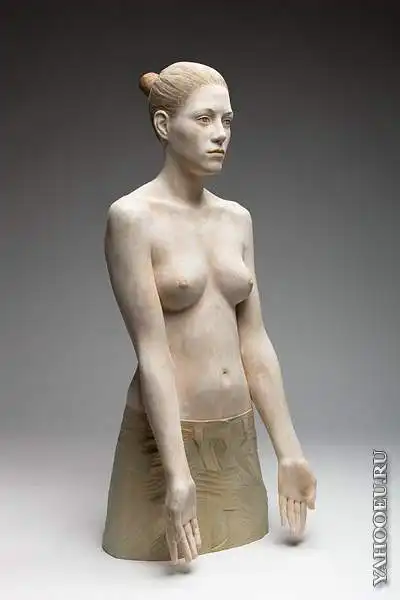 Дерево как-будто оживает под резцом итальянского скульптора Бруно Валпота (Bruno Walpoth) – его скульптуры настолько реалистичны, что на первый взгляд не совсем понятно, то ли перед вами живой человек, то ли неподвижное изваяние. Бруно тонко прорабатывает все детали, и только следы от инструментов и потертости на поверхности дерева напоминают, что эти существа ненастоящие.
