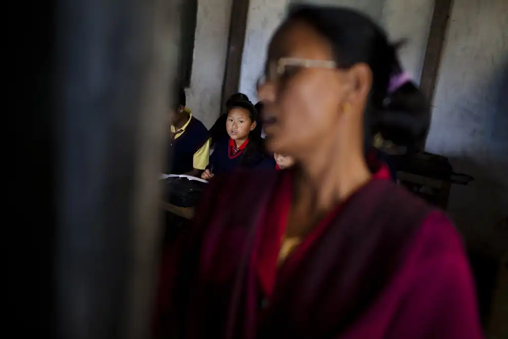 8. 13-летняя Кала Раи знакома с шахтерской работой: с 12 лет она полгода работала на шахте. Учителя убедили ее родителей отправить девочку в школу. Кала мечтает получить медицинское образование. На фото: девочка на уроке английского языка. (Daniel Berehulak/Getty Images)