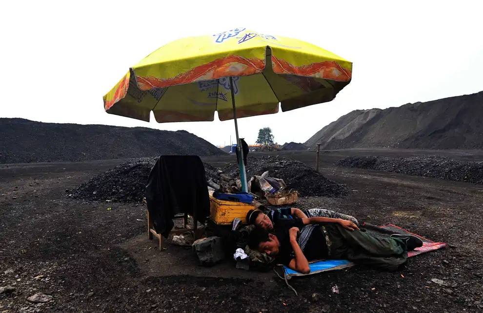 24. Люди спят на свалке в угольной разработке на окраине Фушун, Китай. (Stringer/Reuters)
