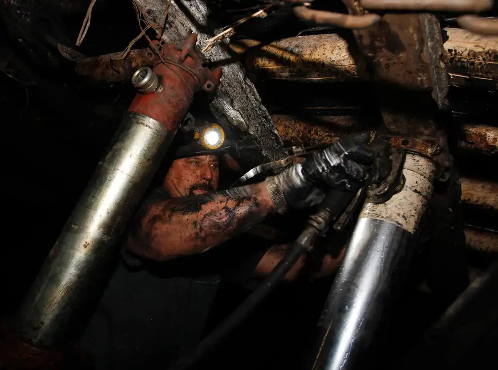 36. Шахтер работает в выемочном штреке в 90 метрах под землей в шахте в Орнонтовице, Польша. (Peter Andrews/Reuters)