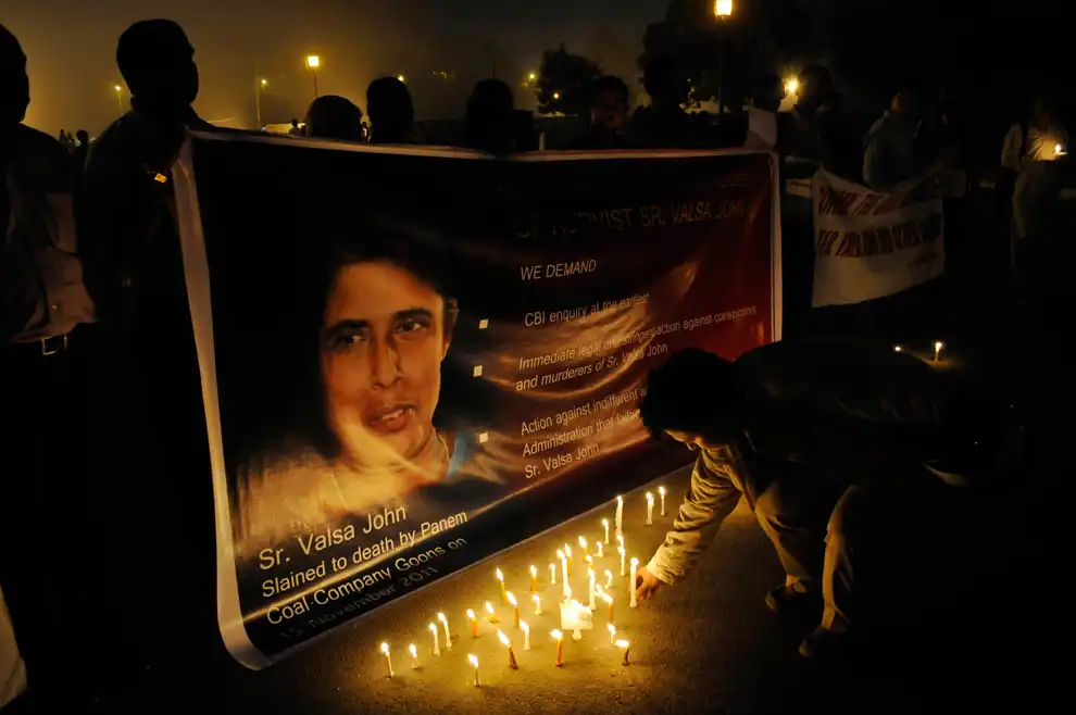 45. Католическая монахиня сестра Вальса Джон была убита в Джаркханде. По одной из версий, в ее смерти виновны директора угольных компаний, против которых она выступала за права местного населения. На фото: вечерняя служба, организованная сторонниками Вальсы Джон. (Tsering Topgyal/AP)