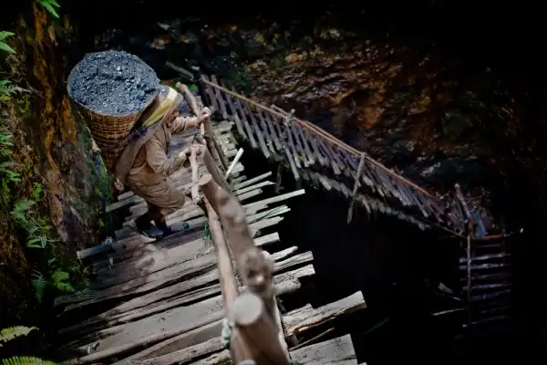5. Анил Баснет толкает телегу с углем из подземного туннеля. Лишь часть рабочих шахт добросовестно отправляет заработанные деньги домой, многие тратят их на алкоголь, наркотики и проституток. (Daniel Berehulak/Getty Images)