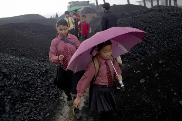 7. Путь домой у этих школьников лежит через угольные склады. Школы с бесплатным обучением не манят родителей, которые видят в своих детях источник дохода. Работа на шахте кажется им лучшей перспективой, чем образование. (Daniel Berehulak/Getty Images)