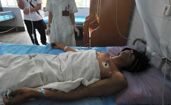 20. Шахтер, находившийся в заваленной шахте более 180 часов, в больнице в Хешане, Китай. (China Daily/Reuters)