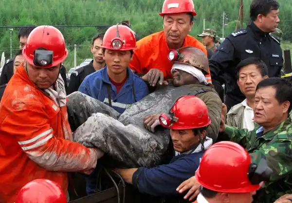 25. Спасатели выносят шахтера из затопленной шахты в Китае. (China Daily/Reuters)