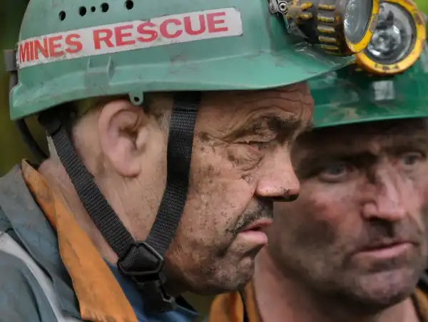 29. Уэльские спасатели во время операции по спасению шахтеров, оказавшихся в завале в 90 метрах под землей в шахте у поселка Силибебил, Уэльс. Все четверо шахтеров погибли. (Matt Cardy/Getty Images)