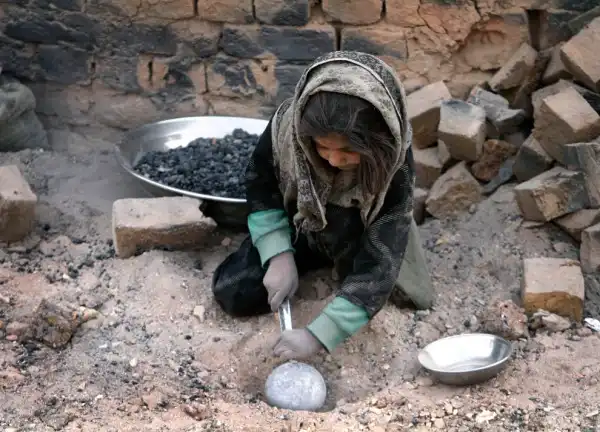 48. Девочка соскабливает вещества, идущие на растопку, на кирпичном заводе в Суркхроде, Афганистан. (Rahmat Gul/Associated Press)
