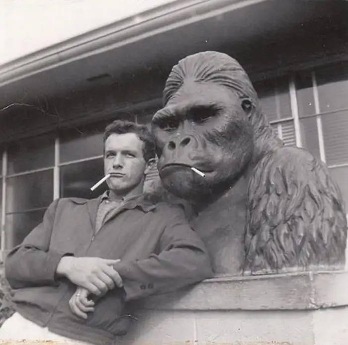 Фрагмент из фильма Return of the Fly (Возвращение мухи) (1959), являющегося продолжением фильма ужасов The Fly (1958). Режиссёр - Edward Bernds. В отличие от предыдущего фильма, Return of the Fly был снят в черно-белом варианте. Далее, в 1965, последовало продолжение Curse of the Fly (Проклятие мухи).