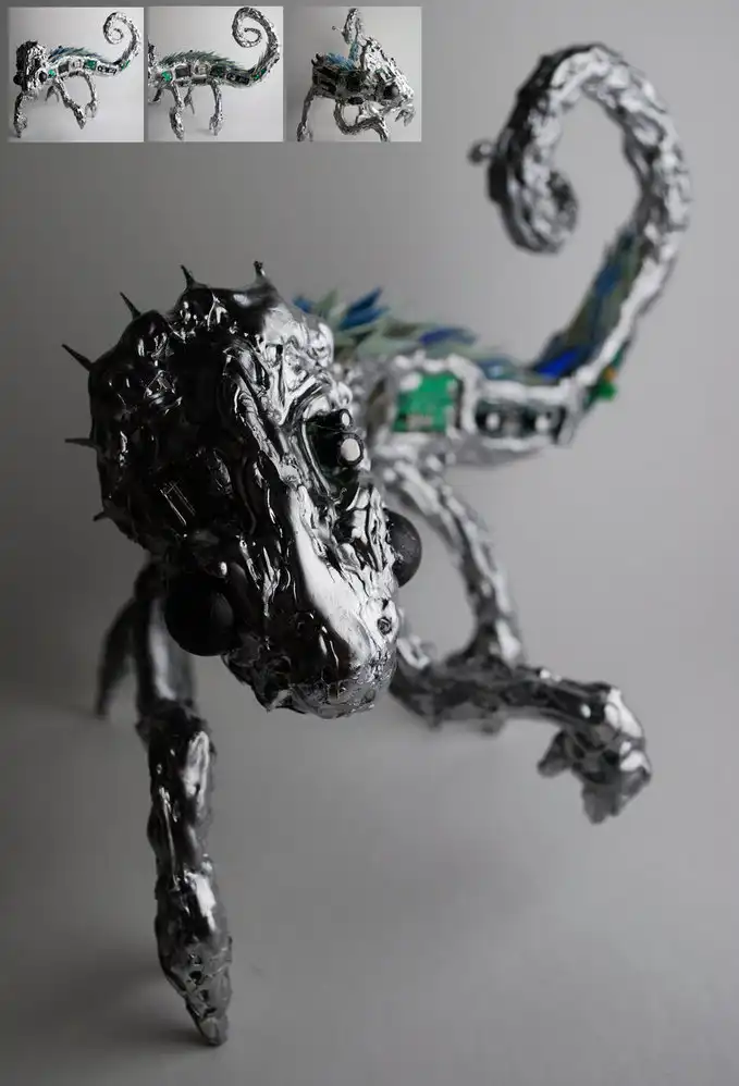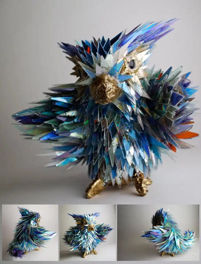 "Характер каждой моей работы уникален. Я смешиваю много различных материалов из отходов, чтобы получить необычную органику персонажа. При этом я использую только материалы, предназначенные для утилизации, которые дают моим скульптурам термин - экологичный." - рассказывает Шон Эйвери.
