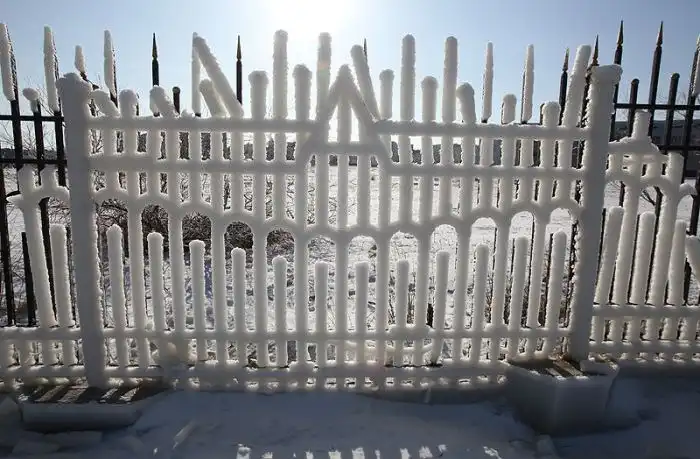 Столбы, скамейки, перила, деревья и даже асфальт стали, красивыми, ледяными скульптурами,