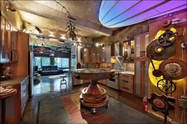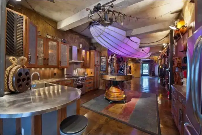 Эти апартаменты расположились в нью-йоркском районе Челси. В одном из многоквартирных домов находится потрясающая квартира в стиле стимпанк. Внутри необычной квартиры расположились странные летающие корабли под потолком и всяческие необычные механизмы.
