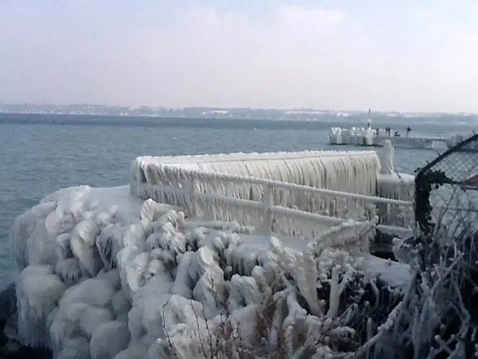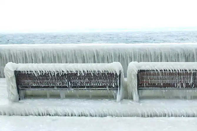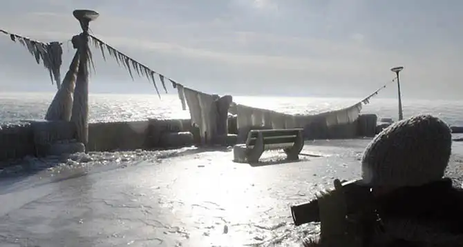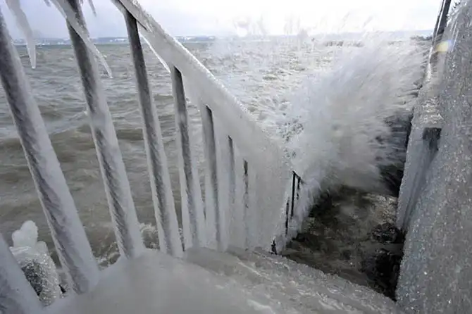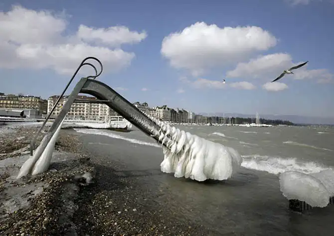 Удивительная ледяная скульптура из воды, разбившейся о берег озера Женева.