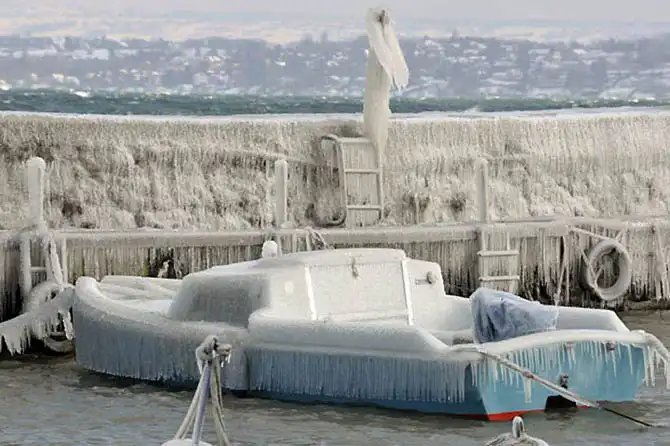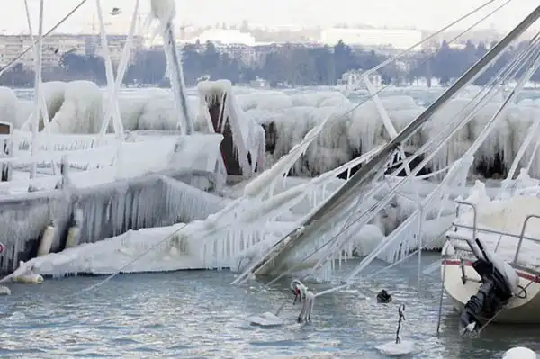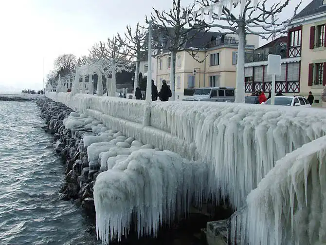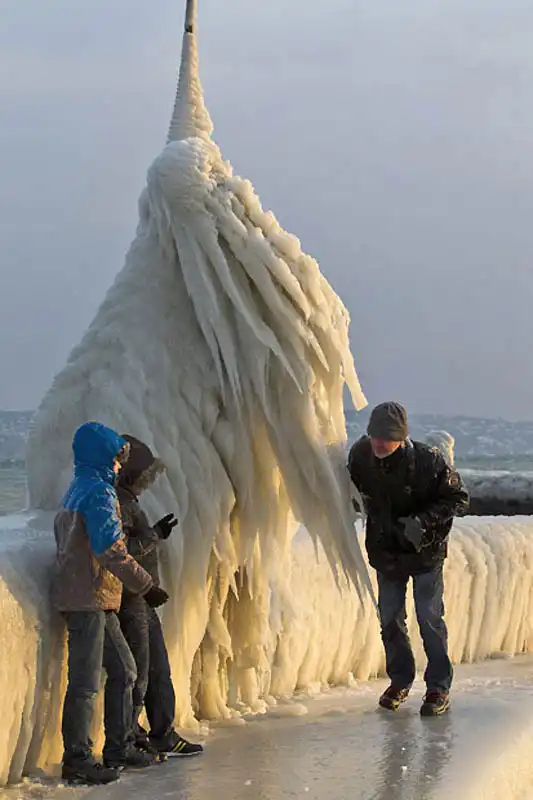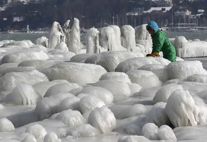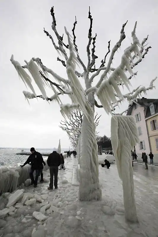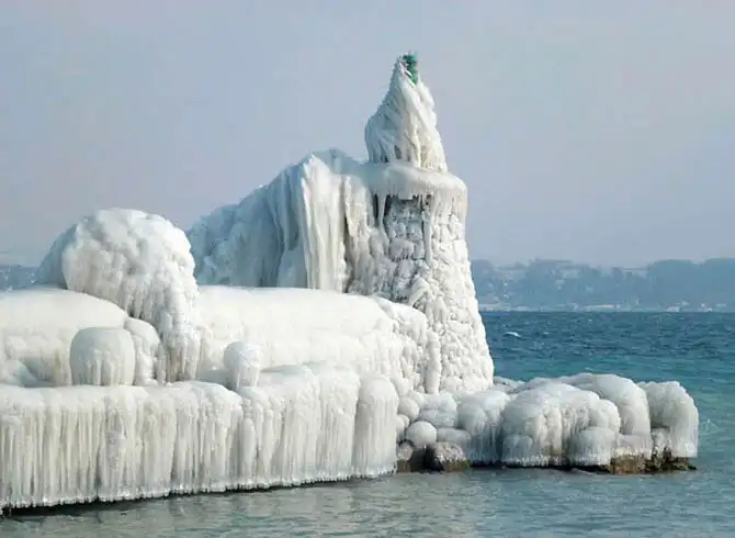 Вот такие ледяные скульптуры можно встретить на Женевском озере.