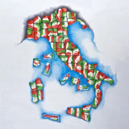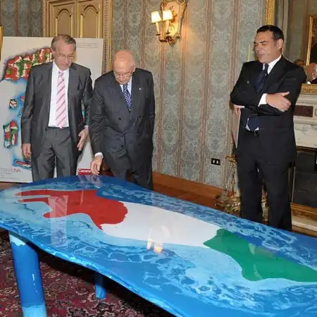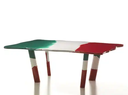 "Viva, Британия!" - поют герои фильма, снятого по книжке Виктора Гюго "Без семьи". Сегодня хочется спеть "Viva, Италия!" Дело в том, что Гаэтано Пеше (Gaetano Pesce), этот седой 71-летний красавец-дизайнер заставил удивиться. Он задумал сложить карту Италии, как пазл, из зелено-бело-красных, как флаг, столов.