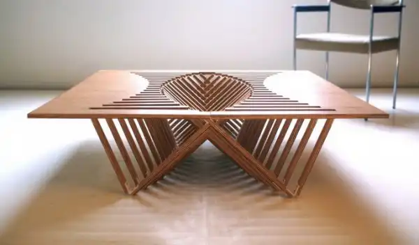 Rising Table - красивый деревянный журнальный столик, который сконструирован с использованием интересной кинематики сгибания, одновременно эстетичной и практичной, так как она позволяет положить стол абсолютно плашмя. Стол разработал голландский дизайнер Роберт ван Эмбрикс (Robert van Embricqs).