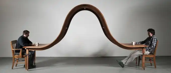 Художник и дизайнер Мишель Беиц (Michael Beitz) создал "Wave Dining Table", удивительный стол, который поможет вам избежать любого вынужденного разговора с человеком, расположенным к вам лицом. Это практически настоящая скульптура!